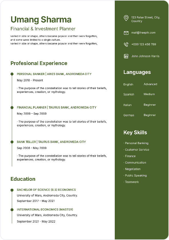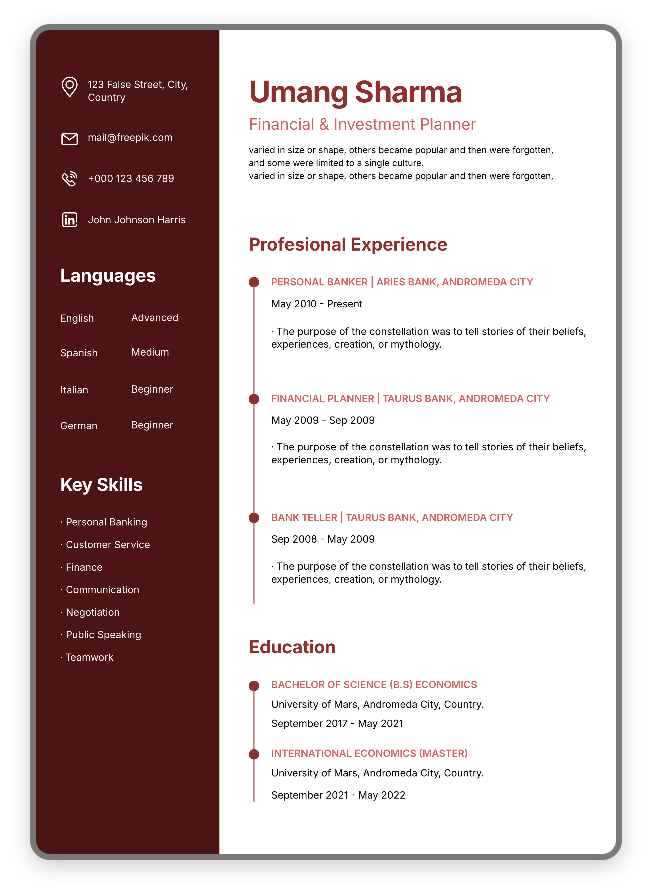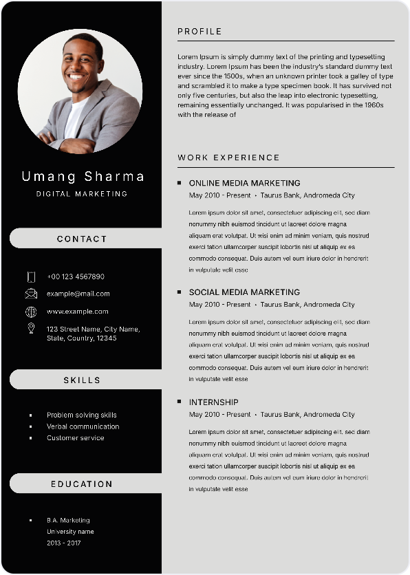 Choose from industry-tailored, visually balanced templates that highlight what truly matters—your skills and experience.